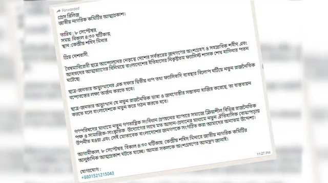 বিজ্ঞপ্তিতে বলা হয়, ‘বৈষম্যবিরোধী ছাত্র আন্দোলনের নেতৃত্বে দেশের সর্বস্তরের জনগণের অংশগ্রহণ ও সহস্রাধিক শহীদ ও আহতদের আত্মত্যাগের বিনিময়ে বাংলাদেশের ইতিহাসের নিকৃষ্টতম ফ্যাসিস্ট শাসক শেখ হাসিনার পতন ঘটেছে। ছাত্র-জনতার অভ্যুত্থানের এক দফার দ্বিতীয় ধাপ তথা ফ্যাসিবাদী ব্যবস্থার বিলোপ ঘটিয়ে নতুন রাজনৈতিক বন্দোবস্তের লক্ষ্য অর্জন করতে হবে।’
