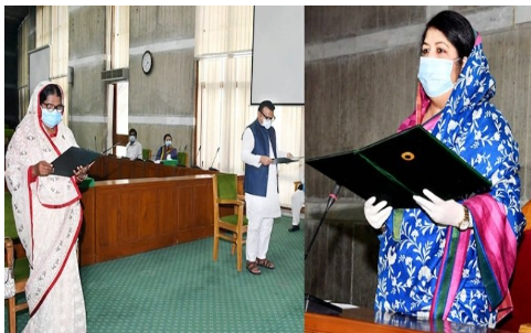জাতীয় সংসদের স্পীকার ড. শিরীন শারমিন চৌধুরী এমপি সংসদ ভবনের শপথ কক্ষে নবনির্বাচিত সংসদ সদস্যদ্বয়কে শপথ বাক্য পাঠ করান।