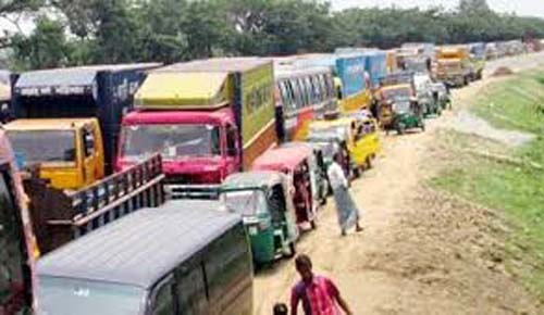 ঢাকা-চট্টগ্রাম মহাসড়কের গজারিয়া অংশে ১৩ কিলোমিটার যানজট