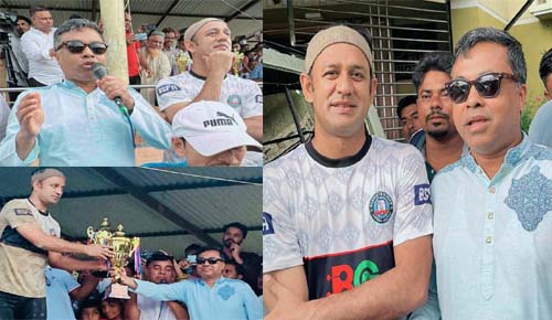 খেলা শেষে দুই দলের অধিনায়কের হাতে ট্রফি তোলে দেন প্রধান অতিথি ব্যারিস্টার জাকির আহাম্মদ।