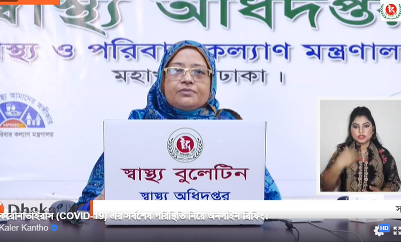 আইএনবি নিউজ:আজ শুক্রবার (৭ আগস্ট) দুপুরে স্বাস্থ্য অধিদপ্তরের করোনাভাইরাস সংক্রান্ত নিয়মিত হেলথ বুলেটিনে তথ্য উপস্থাপন করেন স্বাস্থ্য অধিদপ্তরের অতিরিক্ত মহাপরিচালক (প্রশাসন) ডা. নাসিমা সুলতানা।