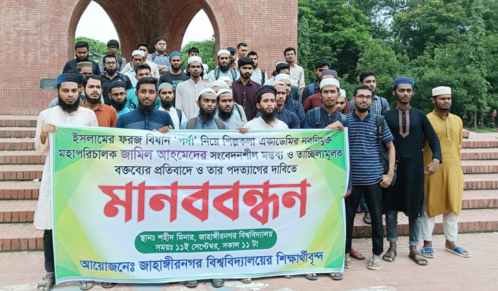 আইএনবি ডেস্ক:পর্দা নিয়ে সংবেদনশীল মন্তব্য ও তাচ্ছিল্যমূলক বক্তব্যের প্রতিবাদে শিল্পকলা অ্যাকাডেমির নবনিযুক্ত মহাপরিচালক জামিল আহমেদের পদত্যাগ দাবি করেছেন জাহাঙ্গীরনগর বিশ্ববিদ্যালয়ের (জাবি) শিক্ষার্থীরা।
