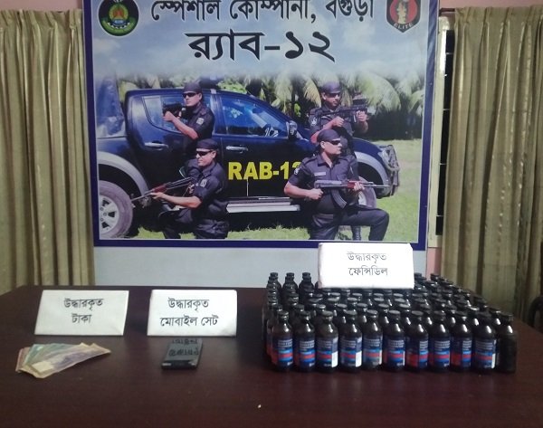 বগুড়ায় ফেন্সিডিলসহ মাদক ব্যবসায়ী গ্রেপ্তার