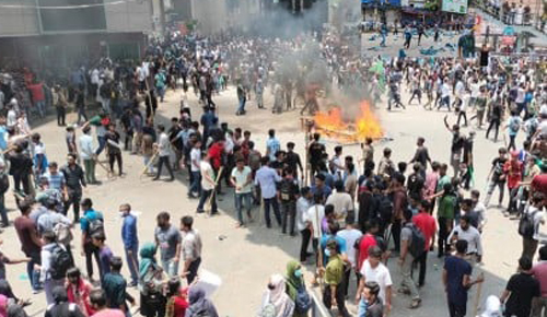 এসময় পুলিশ টিয়ার শেল ছুড়ে, গুলি করে ছাত্রদের ছত্রভঙ্গ করে দেওয়ার চেষ্টা করছে। সংঘর্ষের এলাকায় রাস্তায় আগুন ধরিয়ে দেওয়া হয়েছে। কমপক্ষে ৫টি মোটরসাইকেলে আগুন দেওয়া হয়েছে।