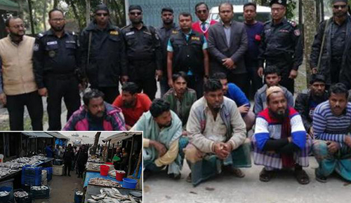 আটককৃতরা হলেন, মো. জুবায়ের (২৮), মো. রোকন উদ্দিন (৪৪), মো. রাইছুল (১৯), দুধা হাওলাদার (৩৫), মো. সোহাগ (২৯), মো. মেজবাহ উদ্দিন(৩০), মো. মাহবুব ফরাজি (৩০), মো. জসিম খান (৩৫), মো. বাহাদুর প্যাদা (৩২), মো. আ: খালেক মোল্লা (৪৫), মো. আলি আজগর (৩৭), মো. আবুল বাশার (৩৫)।
