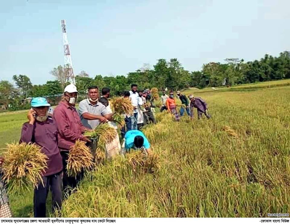 বিশ্বজুড়ে ছড়িয়ে পড়া মরণঘাতক কোভিড-১৯ করোনা ভাইরাসের প্রভাব পড়েছে বোরো ধান আবাদে। জমিতে শত শত একর পাকা ধান নিয়ে বিপাকে পড়েছেন হাওর অঞ্চলের কৃষক। শ্রমিক এবং ধান কাটার মেশিন সংকটে পড়েছেন তারা। নির্দিষ্ট সময়ের মধ্যে ধান কাটতে না পারলে অকাল বন্যা এবং পাহাড়ি ঢলে ফসল তলিয়ে যাবে। প্রধানমন্ত্রী শেখ হাসিনা ও যুবলীগ চেয়ারম্যান শেখ ফজলে শামস পরশ ও সাধারণ সম্পাদক মইনুল হোসেন নিখিলের নির্দেশনায় কৃষকের এমন অসহায় সময়ে পাশে দাঁড়াতে শুরু করেছে বাংলাদেশ আওয়ামী যুবলীগ।
