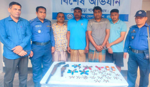 অবৈধ অস্ত্র ও গুলি হেফাজতে রাখার দায়ে বিশ্বজিৎ, রাজিব, অভিরাম ও শংকরকে গ্রেফতার করা হয়েছে।