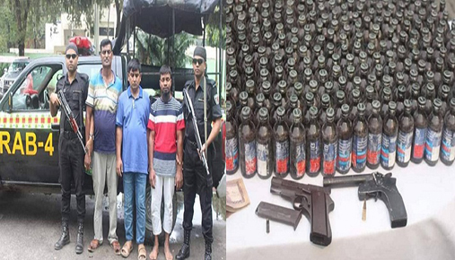 আইএনবি নিউজ: রাজধানীর গাবতলী এলাকা থেকে র্যাব-৪ মো. শাহজালাল বুলেট (৩২), মো. নাসির (৩৫) ও মো. ফারুক হোসেন (২৮) নামে তিন মাদক ব্যবসায়ীকে গ্রেপ্তার করেছে। এ সময় পিস্তল, শুটারগানসহ বিপুল পরিমাণ ফেনসিডিল উদ্ধার করা হয়েছে।