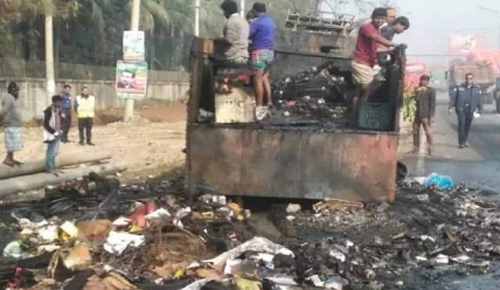 সাভার প্রতিনিধি : ঢাকা-আরিচা মহাসড়কে বুধবার (১৬ জানুয়ারি) দিবাগত রাত ৩টার দিকে আশুলিয়ার জাহাঙ্গীরনগর বিশ্ববিদ্যালয় সংলগ্ন এলাকায় একটি ট্রান্সপোর্ট এজেন্সির চলন্ত ট্রাকে অগ্নিকাণ্ডের ঘটনা ঘটেছে। অগ্নিকাণ্ডে ট্রাক ও এতে থাকা বিপুল পরিমাণ স্টেশনারীজ, গাড়ির টায়ার ও ইলেকট্রিকসহ প্রায় ৭-৮ লাখ টাকার মালামাল পুড়ে যায়।