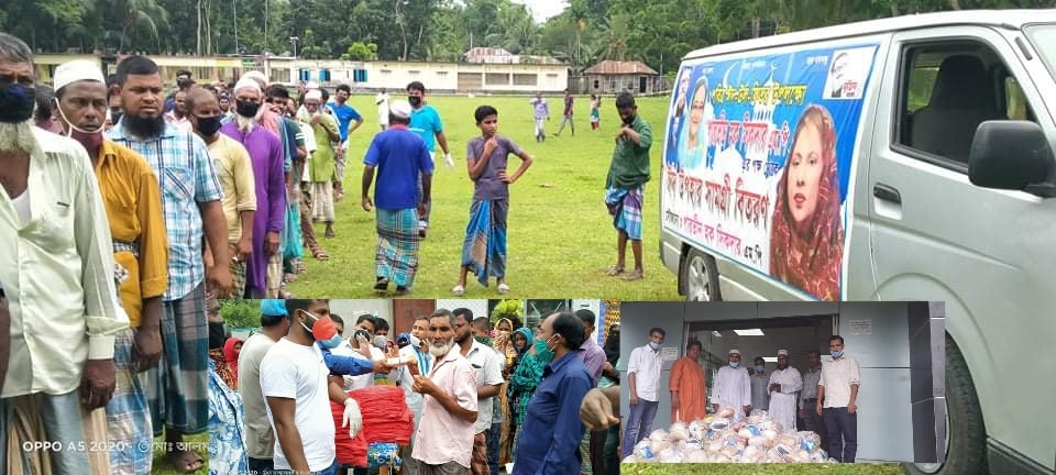 পারভীন হক সিকদার এমপির পক্ষে হস্তান্তর ও বিতরণ করেন, ন্যাশনাল ব্যাংকের আঞ্চলিক প্রধান এসকেন্দার আলী ফকির, সিকদার পরিবারের সজল সিকদার ও আওয়ামীলীগ, যুবলীগ, স্বেচ্ছাসেবকলীগ ও ছাত্রলীগের নেতৃবৃন্দ।