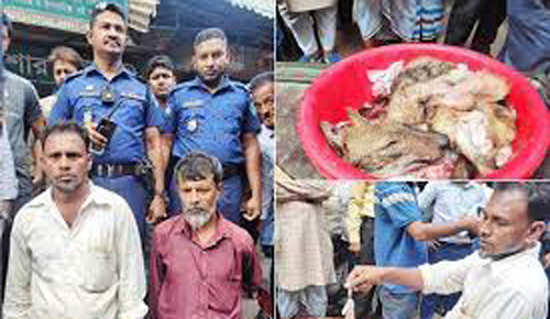 এ সময় বাজারে শিয়ালের মাংস বিক্রি করার অপরাধে মো. জুলহাস ও মনির হোসেন নামে দুই ব্যক্তিকে ৫ হাজার টাকা করে ১০ হাজার টাকা অর্থদণ্ড দিয়েছেন ভ্রাম্যমাণ আদালত।