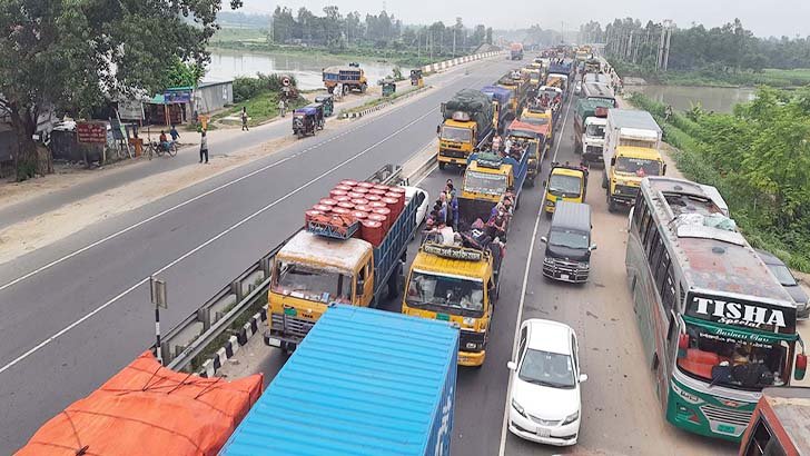 সোমবার ভোর থেকে বঙ্গবন্ধু সেতু থেকে টাঙ্গাইল সদর উপজেলার রসুলপুর পর্যন্ত ১৭ কিলোমিটার এলাকাজুড়ে যানজটের সৃষ্টি হয়।