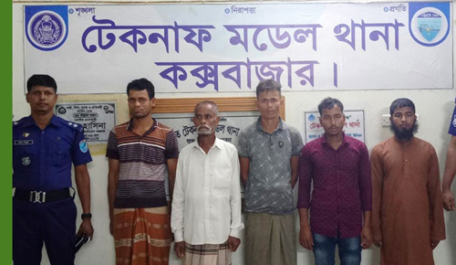 আসামিরা হলেন, টেকনাফ সদর ইউপির তুলাতলী এলাকার হোছন আহমদের ছেলে মো. বেলাল (২০), আবদুর রশিদ (২৭), আমির হামজার ছেলে আব্দুর রহমান (৫৫), হোয়াইক্যং ইউপির ঝিমংখালী এলাকার মো. কালুর ছেলে জাহাঙ্গীর আলম (২৬), আব্দুল হাকিমের ছেলে মো. জাহাঙ্গীর (১৯)।