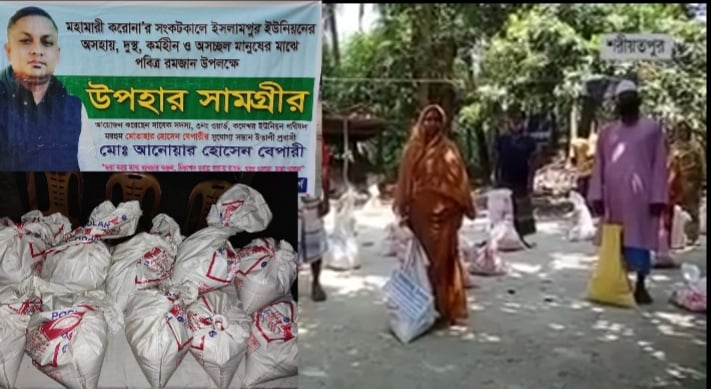 মোঃ আনোয়ার হোসেন বেপারী ইতালি থাকায় তার পক্ষে তার ছোট ভাই মোঃ নাজমুল বেপারী বৃহস্পতিবার ইসলামপুরের দুস্থ পরিবারের মাঝে এই খাদ্য সামগ্রী বিতরণ করেন। খাদ্য সামগ্রী মধ্যে ছিলো ৫ কেজি চাউল, ১ কেজি ডাল, ১ কেজি তেল, ১ কেজি ছোলা, ৫০০ গ্রাম পিয়াস, ৫০০ গ্রাম খেজুর, ৫০০ চিনি।