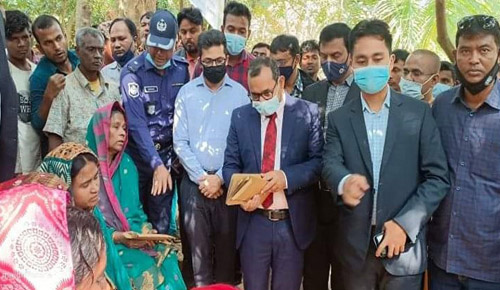 বুধবার (২৩ ফেব্রুয়ারি) দুপুরে কক্সবাজার জেলা প্রশাসক মো. মামুনুর রশিদ দ্বিতীয়বারের মতো ওই পরিবারের সদস্যদের সঙ্গে দেখা করতে যান। এ সময় তিনি শোকাহত পরিবারকে সমবেদনা জানাতে গিয়ে বাড়িগুলো দ্রুত হস্তান্তরের কথা জানান। একই সঙ্গে তিনি ১ লাখ ৩৫ হাজার টাকা সহায়তা দেন।