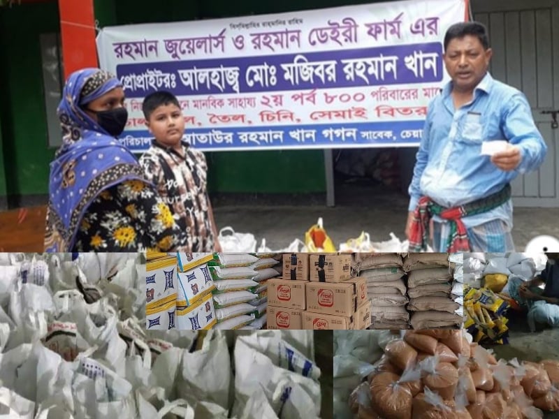 শরীয়তপুর সদর উপজেলায় করোনা ভাইরাসে কারনে লগডাউন থাকায় কর্মহীন হয়ে পরা পালং ইউনিয়নের অসহায়, শ্রমজীবী, দরিদ্র, দিনমজুর মানুষের বাড়ি বাড়ি গিয়ে রহমান জুয়েলার্স ও রহমান ডেইরী ফার্ম এর পক্ষ থেকে ঈদ উপলক্ষে খাদ্য সামগ্রী বিতরণ করা হয়েছে।