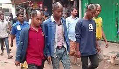 জানা গেছে, চুরি করতে গিয়ে এলাকার পাহারাদারদের হাতে অটোরিকশার ব্যাটারিসহ আটক হয় ৪ চোর। খবর পেয়ে এলাকার লোকজন সেখানে জড়ো হয়। পরে তাদের মারধর ও চুল কেটে দেওয়া হয়।