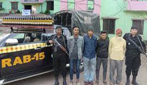 কক্সবাজার প্রতিনিধি: কক্সবাজারের টেকনাফে সোমবার (২ জানুয়ারি) রাত ২টার দিকে উপজেলার হোয়াইক্যংয়ের খাড়াংগা ঘোনা নজির আহম্মদের বাড়ি থেকে অভিযান চালিয়ে ৩৪৮ বোতল বিদেশি মদ উদ্ধার করা হয়েছে। এ সময় দুই রোহিঙ্গাসহ চারজনকে গ্রেপ্তার করে র্যাব-১৫’র সদস্যরা।