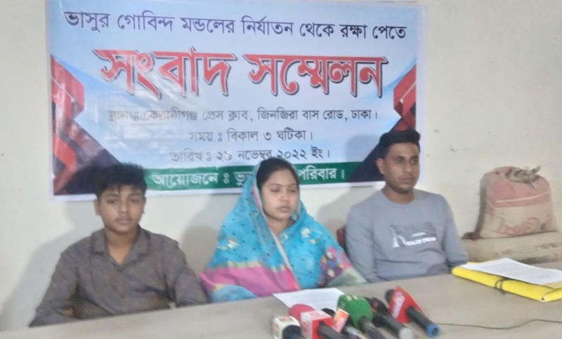 মঙ্গলবার (২৯ নভেম্বর) দুপুরে কেরানীগঞ্জ প্রেস ক্লাবে এক সংবাদ সম্মেলনে ভুক্তভোগী নুপুর রানী মন্ডল (৩৪) অভিযোগ করেন, দেড় বছর পূর্বে ক্যান্সারে স্বামী মারা যাওয়ার পর একমাত্র ছেলে স্থানীয় বন্ধন কিন্ডার গার্টেন স্কুলের ষষ্ঠ শ্রেণিতে পড়ুয়া শান্ত মন্ডলকে নিয়ে স্বামীর বাড়িতে বসবাস করছিলেন। তাকে সম্পত্তি থেকে উচ্ছেদের জন্য ভাসুর গোবিন্দ চন্দ্র নানা প্রকার নির্যাতন ও কুপ্রস্তাবের মাধ্যমে বিরক্ত করে এবং ছেলেকে মেরে ফেলার হুমকি দেয়। এতে কোনো কাজ না হলে গত ৩রা নভেম্বর রাতে ছেলে টয়লেটে গেলে নুপুরকে একা পেয়ে তার ভাসুর ঝাপটে ধরে শ্লীলতাহানির চেষ্টা করে।
