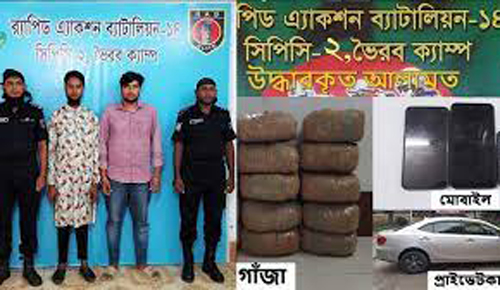 র‌্যাব সূত্র জানায়, গোপন সংবাদের ভিত্তিতে র‌্যাবের দলটি ভৈরবের নাটালের মোড় এলাকায় অভিযান চালায়। এ সময় একটি প্রাইভেটকার তল্লাশি চালিয়ে ৩০ কেজি গাঁজা উদ্ধার ও দু’জনকে গ্রেফতার করা হয়। তারা হলেন নরসিংদী জেলার মাধবদী উপজেলার ছোট গদাইর চর গ্রামের মৃত রওশন আলীর ছেলে কামরুল ইসলাম (৩২) ও পাবনা জেলার ঈশ্বরদী উপজেলার জয়নগর গ্রামের মোস্তাব আলী মুনের ছেলে মারুফ হাসান (২০)।