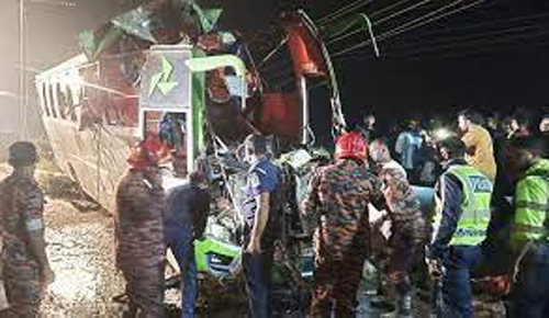ময়মনসিংহ প্রতিনিধি: ময়মনসিংহে সোমবার (৬ নভেম্বর) দিনগত রাত সাড়ে ১২টার দিকে ঢাকা-ময়মনসিংহ মহাসড়কের শিকারিকান্দা এলাকায় একটি বাস নিয়ন্ত্রণ হারিয়ে চারজন নিহত হয়েছেন। আহত হয়েছেন অন্তত ৪০ জন। তাৎক্ষণিকভাবে হতাহতদের নাম ও পরিচয় জানা যায়নি।