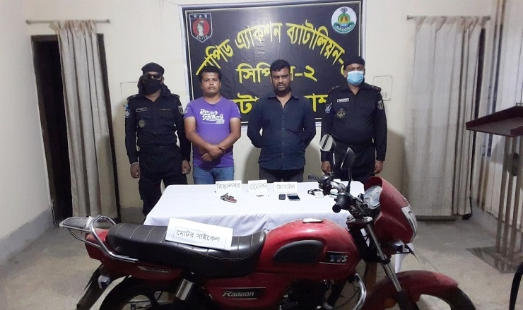 র‌্যাবের এক সংবাদ বিজ্ঞপ্তিতে জানানো হয়েছে, গোপণ সংবাদে অভিযান চালিয়ে অস্ত্রসহ এ দুই যুবককে গ্রেপ্তার করা হয়েছে। এছাড়াও তাদের কাছ থেকে একটি মোটরসাইকেল, দুটি মোবাইল সেট, চারটি সিমকার্ড এবং নগদ এক হাজার ৬০০ টাকা জব্দ করা হয়।