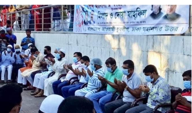 যুবলীগ চেয়ারম্যান শেখ ফজলে শামস পরশ এবং সাধারণ সম্পাদক আলহাজ্ব মোঃ মাইনুল হোসেন খান নিখিলের আহ্বানে রাষ্ট্রনায়ক শেখ হাসিনার সু-স্বাস্থ্য ও দীর্ঘায়ু কামনা করে দোয়া ও মিলাদ মাহফিলের আয়োজন করা হয়।