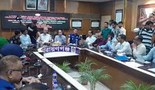 জেলা প্রশাসক মোহাম্মদ মাহমুদুল হকের সভাপতিত্বে অন্যদের মধ্যে জেলা পুলিশ সুপার গোলাম মোস্তফা রাসেল, র‍্যাব-১১ এর অধিনায়ক লে. কর্নেল তানভীর মাহমুদ পাশা, নির্বাচনের রিটার্নিং অফিসার ও নারায়ণগঞ্জ জেলা নির্বাচন কর্মকর্তা কাজী মো. ইস্তাফিজুল হক আকন্দসহ আইন শৃঙ্খলা রক্ষাকারী বাহিনীর ঊর্ধ্বতন কর্মকর্তা ও নির্বাচন সংশ্লিষ্ট ব্যক্তিবর্গ উপস্থিত ছিলেন।