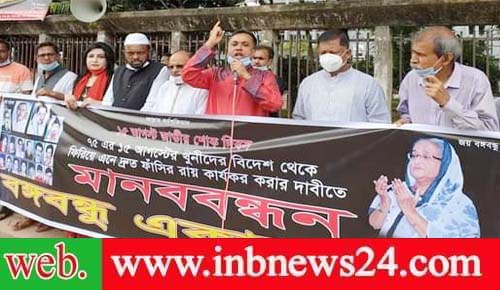 আজ শুক্রবার (১৪ আগস্ট) সকাল ১০ টায়, ঢাকা জাতীয় প্রেসক্লাব চত্বরে বঙ্গবন্ধু একাডেমীর উদ্যোগে স্বাস্থ্যবিধি অনুসরণ পূর্বক বঙ্গবন্ধু হত্যার পলাতক খুনিদের বিচারের রায় কার্যকর করার দাবীতে মানব বন্ধন অনুষ্ঠিত হয়।