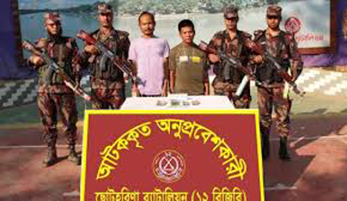আটকরা হলেন- জ্ঞানরঞ্জন চাকমা (৪৫) ও পিংকু চাকমা (২২)।