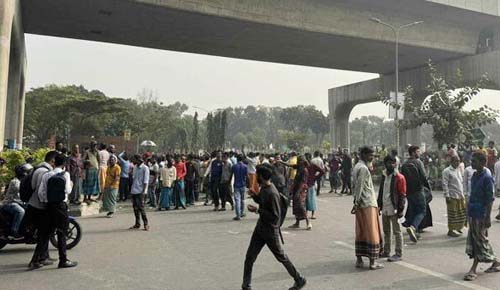 আগারগাঁও সড়ক দিয়ে আপাতত যান চলাচল বন্ধ রয়েছে।
