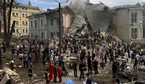 ইউক্রেনে জাতিসংঘের মানবাধিকার মনিটরিং মিশনের প্রধান ড্যানিয়েল বেল বলেছেন, ৪৫ মিনিটের ব্যবধানে চালানো দুটি হামলায় সেন্ট প্যানটেলিমন ক্লিনিকাল হাসপাতালে “লোটারিং যুদ্ধাস্ত্র” বা আত্মঘাতী ড্রোন – আঘাত করে। তিনি বলেন, “দ্বিতীয় দফায় হামলার পর অধিকাংশ প্রাণহানি ঘটেছে।