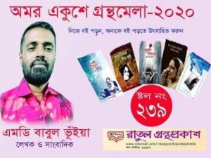 তিনি আরোও বলেন, আপনি যদি একটা বই কিনেন তাতে একজন অসহায় গরিব মানুষের মুখে অন্তত একটা হাসি আমরা দেখতে পারব, এটাই আমাদের জন্য বড় পাওয়া বলে আমি মনে করি। কারণ লেখকের বই গুলো থেকে যা আয় হয় তা গরিব, অসহায়দের মাঝে বিভিন্নভাবে সহযোগিতা করে থাকনে।