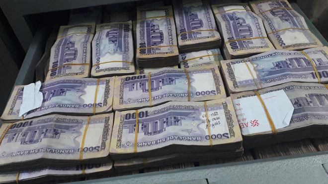 তিনি বলেন, অভিযানে ওই বাড়িতে টাকা ভর্তি পাঁচটি সিন্দুক পাওয়া গেছে। সেই সঙ্গে পাওয়া গেছে পাঁচ কোটি টাকার এফডিআর এবং বিপুল পরিমাণ স্বর্ণালঙ্কার। প্রাথমিকভাবে মনে হচ্ছে টাকার অঙ্ক ২০-২৫ কোটি টাকাও হতে পারে। টাকা গোনার জন্য মেশিন আনা হয়েছে। ওই বাড়িতে বেশ কিছু ক্যাসিনো সরঞ্জামও পাওয়া গেছে, যেগুলোতে ওয়ান্ডারার্স ক্লাবের সিল লাগানো ছিলো বলে ফয়জুল ইসলাম জানান।
