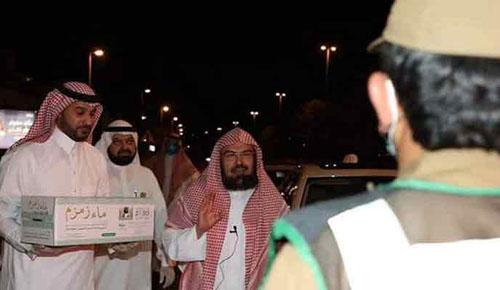 সম্প্রতি মদিনা সফরকালে সেখানে কর্তব্যরত নিরাপত্তারক্ষীদের মাঝে জমজমের পানি বিতরণ করেন হারামাইনের প্রেসিডেন্ট শায়েখ আবদুর রহমান আস সুদাইস।