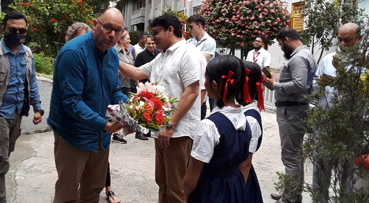 মার্কিন রাষ্ট্রদূত সকাল ৯টা ৫০ মিনিটে তাঁর স্ত্রী এমিকে সঙ্গে নিয়ে কুমুদিনী কমপ্লেক্সে এসে পৌঁছালে সেখানে তাকে স্বাগত জানান কুমুদিনী ওয়েলফেয়ার ট্রাস্টের ব্যবস্থাপনা পরিচালক রাজীব প্রসাদ সাহা।