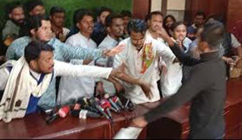 সংবাদ সম্মেলন চলাকালে সমন্বয়কদের দুই গ্রুপে উত্তেজনা সৃষ্টি হয়। একটি পক্ষ রাফির বিরুদ্ধে স্লোগান শুরু করে। এক পর্যায়ে উভয়পক্ষে হাতাহাতি ও বিক্ষোভের ঘটনা ঘটে। তবে কিছুক্ষণের মধ্যেই দুই পক্ষ প্রেস ক্লাব চত্বর ত্যাগ করেন।