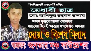 মেধাবী ছাত্র আশিকের বিদেহী আত্মার মাগফেরাত কামনায়