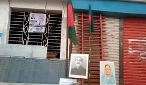 বরিশাল প্রতিনিধি: প্রায় ১৮ মাস তালাবদ্ধ থাকা বরিশালের বানারীপাড়া উপজেলা আওয়ামী লীগের (কার্যক্রম নিষিদ্ধঘোষিত) কার্যালয়ের সামনে জাতীয় পতাকা উত্তোলনের ঘটনা ঘটেছে। তার পাশেই ঝুলানো হয়েছে শেখ মুজিবুর রহমান ও ক্ষমতাচ্যুত প্রধানমন্ত্রী শেখ হাসিনার ছবি। এই ঘটনাকে কেন্দ্র করে স্থানীয় রাজনৈতিক মহলে আলোচনা-সমালোচনা সৃষ্টি হয়েছে।