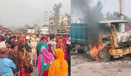 এদিকে ঘটনার প্রতিবাদে তাৎক্ষণিক শ্রমিকরা ঘাতক ট্রাকটিতে আগুন ধরিয়ে পুড়িয়ে দেয়। এ ছাড়া ঢাকা-টাঙ্গাইল মহাসড়ক অবরোধ করে যানবাহনে ভাঙচুর চালায় তারা। খবর পেয়ে পুলিশ ঘটনাস্থলে গিয়ে পরিস্থিতি নিয়ন্ত্রণে আনার চেষ্টা চালাচ্ছে।