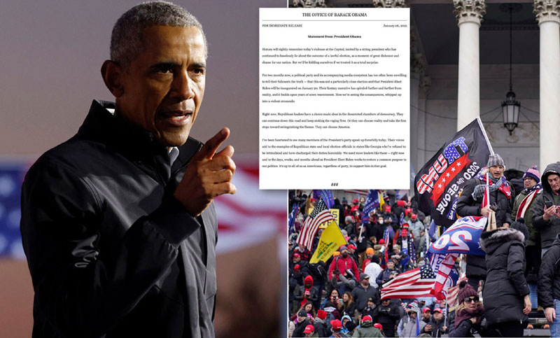 ওবামা মনে করেন, বর্তমান প্রেসিডেন্ট ডোনাল্ড ট্রাম্পের উসকানিতেই মার্কিন পার্লামেন্ট ভবনে তার সমর্থকরা তাণ্ডব চালিয়েছে।