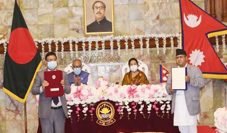 সোমবার (২২ মার্চ) সন্ধ্যায় বঙ্গভবনে বাংলাদেশ ও নেপালের মধ্যে দ্বিপাক্ষিক আলোচনার পর সমঝোতা স্মারকগুলো স্বাক্ষরিত হয়।