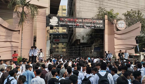 আজ রবিবার বেলা ১ টার দিকে রাজধানীর পুরান ঢাকায় অবস্থিত এ হাসপাতালের সামনে লাঠিশোটা হাতে শিক্ষার্থীরা অবস্থান নেয়। এছাড়া আইনশৃঙ্খলা রক্ষায় অতিরিক্ত পুলিশ মোতায়েন করা হয়েছে।