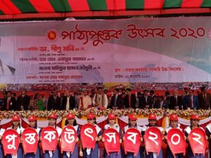 প্রধানমন্ত্রী শেখ হাসিনা গত সোমবার গণভবনে কয়েকজন শিক্ষার্থীর হাতে নতুন বই তুলে দিয়ে ২০২০ শিক্ষাবর্ষের পাঠ্যপুস্তক বিতরণ কর্মসূচির উদ্বোধন করেন। এরপর গতকাল সকাল ১০টায় কেন্দ্রীয়ভাবে প্রাথমিক ও গণশিক্ষা মন্ত্রণালয়ের উদ্যোগে ঢাকা বিশ্ববিদ্যালয়ের কেন্দ্রীয় খেলার মাঠ এবং শিক্ষা মন্ত্রণালয় সাভারে উদর চন্দ্র উচ্চ বিদ্যালয়ের এ উৎসবের আয়োজন করে। রাজধানীর বিভিন্ন এলাকার ২৪১টি সরকারি প্রাথমিক বিদ্যালয়ের প্রায় পাঁচ হাজার ক্ষুদে শিক্ষাার্থীরা স্কুল ড্রেস পড়ে ও ছয় শতাধিক শিক্ষক উপস্থিত ছিল। প্রাথমিক ও গণশিক্ষা প্রতিমন্ত্রী মো. জাকির হোসেন বেলুন ও কবুতর উড়িয়ে বিনামূল্যে বই বিতরণ উৎসব ২০২০ উদ্বোধন করেন। উৎসবের শুরুতে বিভিন্ন বিদ্যালয়ের শিক্ষার্থীরা নানা বেশে নাচে-গানে মঞ্চ মাতিয়ে তোলে। পরে অতিথিদের বক্তব্যের পর ক্ষুদে শিক্ষাার্থীদের হাতে দুটি করে নতুন বই তুলে দেওয়া হয়। শুধু রাজধানীতেই নয়; সারা দেশে এক যোগে বিতরণ করা হয় নতুন বই। শীতের সকালের মিষ্টি রোদে হাতে হাতে নতুন বই, চোখে মুখে খুশির ছটা; নতুন বছরের প্রথম দিন সারা দেশে শিশুরা মেতেছে নতুন বইয়ের উৎসবে।