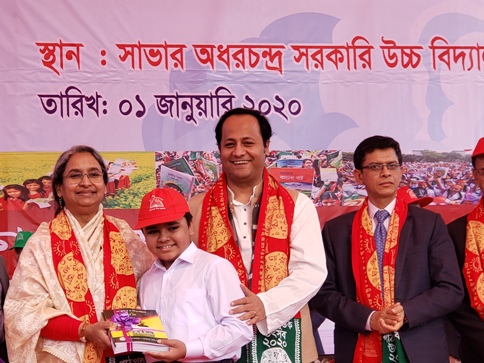 অপরদিকে রাজধানীর অদুরে সাভারের সরকারি অধরচন্দ্র উচ্চ বিদ্যালয়ে কেন্দ্রীয়ভাবে বই উৎসবের আয়োজন করে শিক্ষা মন্ত্রণালয়। জাতীয় সংগীতের মধ্য দিয়ে উৎসবের সূচনা হয়। পরে বেলুন উড়িয়ে অনুষ্ঠানের উদ্বোধন করেন শিক্ষামন্ত্রী দীপু মনি। বক্তৃতার শুরুতেই সবাইকে নতুন বছরের শুভেচ্ছা জানিয়ে শিক্ষামন্ত্রী বলেন, মানসম্মত শিক্ষা নিশ্চিত করবার জন্য আমরা আরও বহুমুখী কার্যক্রম গ্রহণ করেছি। আমরা যুগপোযুগী পাঠ্যবই প্রণয়ন করছি। আমরা আমাদের মূল্যায়ন পদ্ধতি পরিবর্তন করছি, যাতে শিক্ষার্থীদের উপরে পরীক্ষার চাপ কমানো যায়, শিক্ষাকে আনন্দময় করা যায়। তিনি আরও বলেন, শুধু জিপিএ-৫, জিপিএ-৫ এই উন্মাদনার পেছনে যেন না ছুটি। আমার যা পড়ার আছে তা আমি পড়ব, শিখব, চেষ্টা করব আমার সামর্থ্য অনুযায়ী ভালো করতে। কিন্তু আমাকে জিপিএ-৫ পেতেই হবে এজন্য আমি পড়াশোনা ছাড়া কিছুই করব না, শরীর চর্চায় সময় দিব না, সাংস্কৃতিক কর্মকান্ডে অংশ নেব না, তাহলে হবে না। সবকিছু মিলিয়েই একজন পরিপূর্ণ মানুষ আমাদের হতে হবে। পরে মন্ত্রীয় ছাত্র-ছাত্রীদের হাতে নতুন বছরের বই তুলে দেন। অনুষ্ঠানে মাধ্যমিক ও উচ্চমাধ্যমিক শিক্ষা বিভাগের সচিব মাহবুবুর রহমানের সভাপতিত্বে বিশেষ অতিথি হিসেবে উপস্থিত ছিলেন দুর্যোগ ও ত্রাণ প্রতিমন্ত্রী ডা. এনামুর রহমান, শিক্ষা উপমন্ত্রী ব্যারিস্টার মহিবুল হাসান চৌধুরী, কারিগরি ও মাদ্রাসা শিক্ষা বিভাগের সচিব মুন্সি সাহাবুদ্দীন আহম্মেদ প্রমুখ।