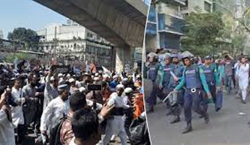 এক পর্যায়ে তাদের বাধা দেয় আইনশৃঙ্খলা বাহিনী। লাঠিচার্জের পাশাপাশি সাউন্ড গ্রেনেড ও টিয়ার শেল ছুড়ে মিছিলে অংশগ্রহণকারীদের ছত্রভঙ্গ করে দেয় পুলিশ। এতে বায়তুল মোকাররম এলাকায় উত্তপ্ত পরিস্থিতির সৃষ্টি হয়।