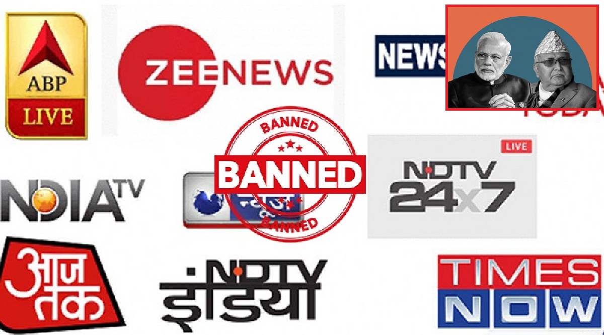 ভারতীয় মিডিয়ায় নেপালের প্রধানমন্ত্রী কেপি শর্মা ওলির বিরুদ্ধে ভিত্তিহীন ও অবমাননাকর প্রচারণা চালানো হচ্ছে বলে অভিযোগ তুলেছিলেন সরকারি মুখপাত্র যুবরাজ খাতিওয়াড়া। এর কয়েকঘণ্টা পর থেকেই দেশটিতে ভারতীয় টিভি চ্যানেলের সম্প্রচার বন্ধ হয়ে যায়।