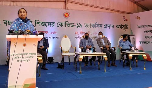 সোমবার রাজধানীর মতিঝিল আইডিয়াল স্কুল এন্ড কলেজে ১২-১৭ বছর বয়সী শিশুদের কোভিড-১৯ টিকা প্রদান কর্মসূচী উদ্বোধন অনুষ্ঠানে তিনি এ কথা বলেন।