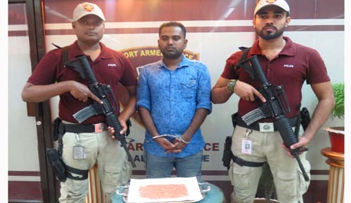 বিমানবন্দর সূত্রে জানা গেছে, গতকাল বৃহস্পতিবার সকাল ১০টার সময় মোঃ সুজন মিয়া (২৮) বিমানবন্দরের অভ্যন্তরীণ টার্মিনালের বর্হিগামী রাস্তার ডানে গাড়িপার্কিং এলাকায় সন্দেহজনক ঘোরাফেরা করছিলো। আর্মড পুলিশের দায়িত্বরত সদস্যরা ধৃত আসামীর গতিবিধি সন্দেহজনক মনে হলে তাকে চ্যালেঞ্জ করে। এসময় সে পুলিশের উপস্থিতি দেখে কৌশলে পালিয়ে যাওয়ার চেষ্টা করে। পরবর্তীতে তাকে বিমানবন্দর আর্মড পুলিশের হেফাজতে নিয়ে তল্লাশি ও জিজ্ঞাসাবাদ করা হয়। এসময় তাকে জিজ্ঞাসাবাদে সে পেটের ভিতর ইয়াবা থাকার কথা স্বীকার করে। পররবর্তিতে বিশেষ কায়দায় আট ঘণ্টা পর তা বের করে আনা হয়।
