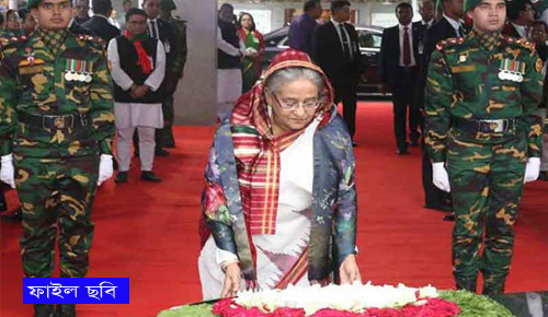বঙ্গবন্ধুর প্রতিকৃতিতে প্রধানমন্ত্রীর শ্রদ্ধা